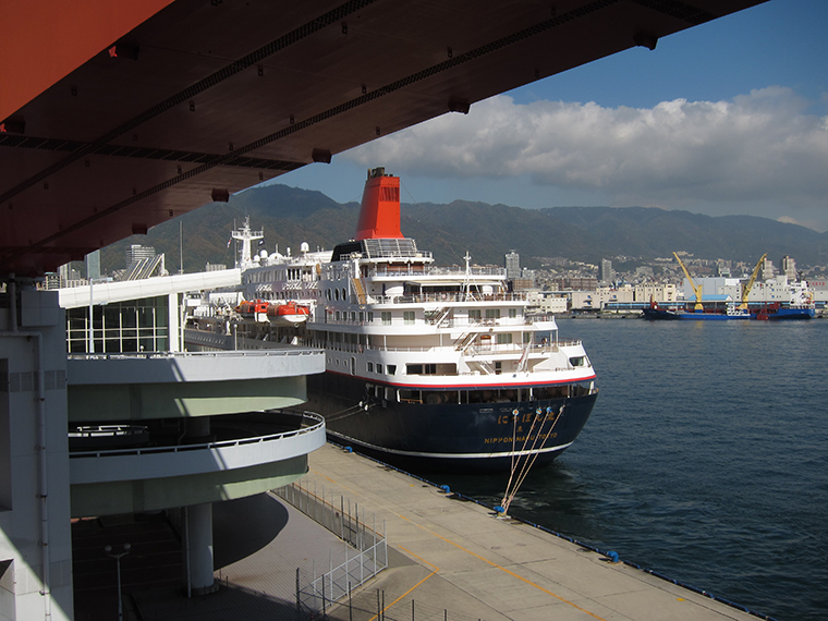 ポートターミナルに停泊する「にっぽん丸」